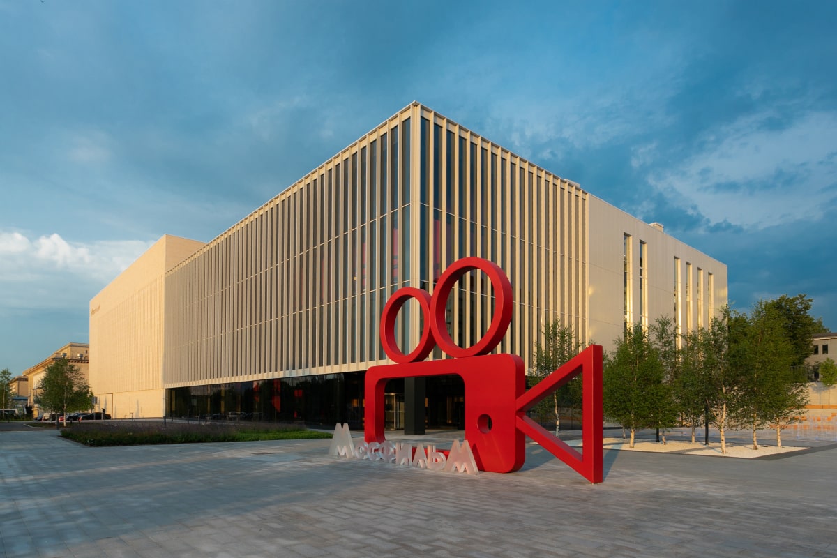 Здание Центра Кино совмещает функциональность, высокие технологии и современный дизайн, оно гармонично вписано в общий архитектурный облик «Мосфильма» и в существующий городской ландшафт. На общей площади 7000 кв.м размещены оснащенные современным оборудованием большой киноконцертный зал на 500 мест и три небольших кинозала, а также атриум и различные выставочные пространства.