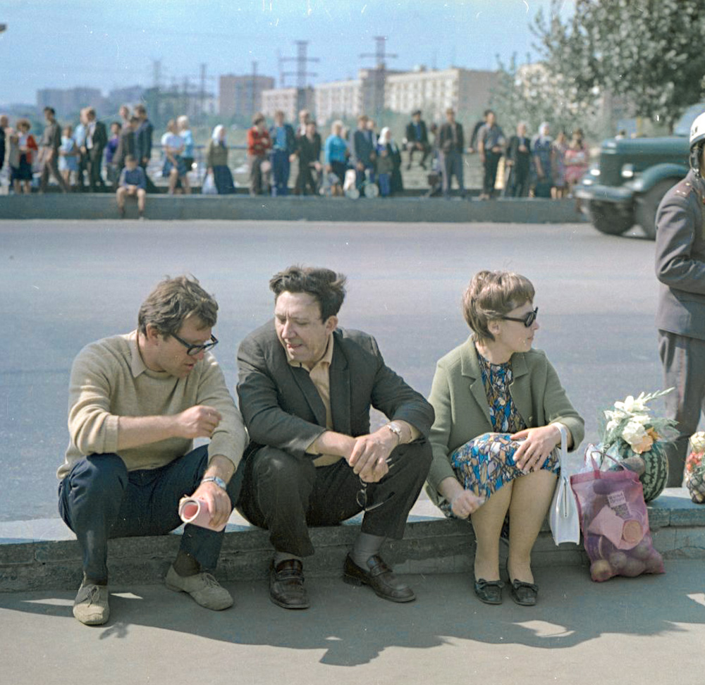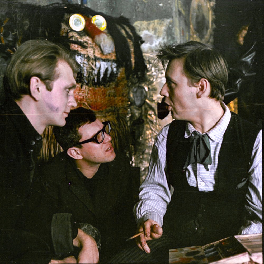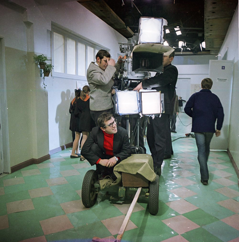 С режиссером Алексеем Салтыковым и оператором Виктором Масленниковым на съемках фильма «Друг мой, Колька!..» (1961)