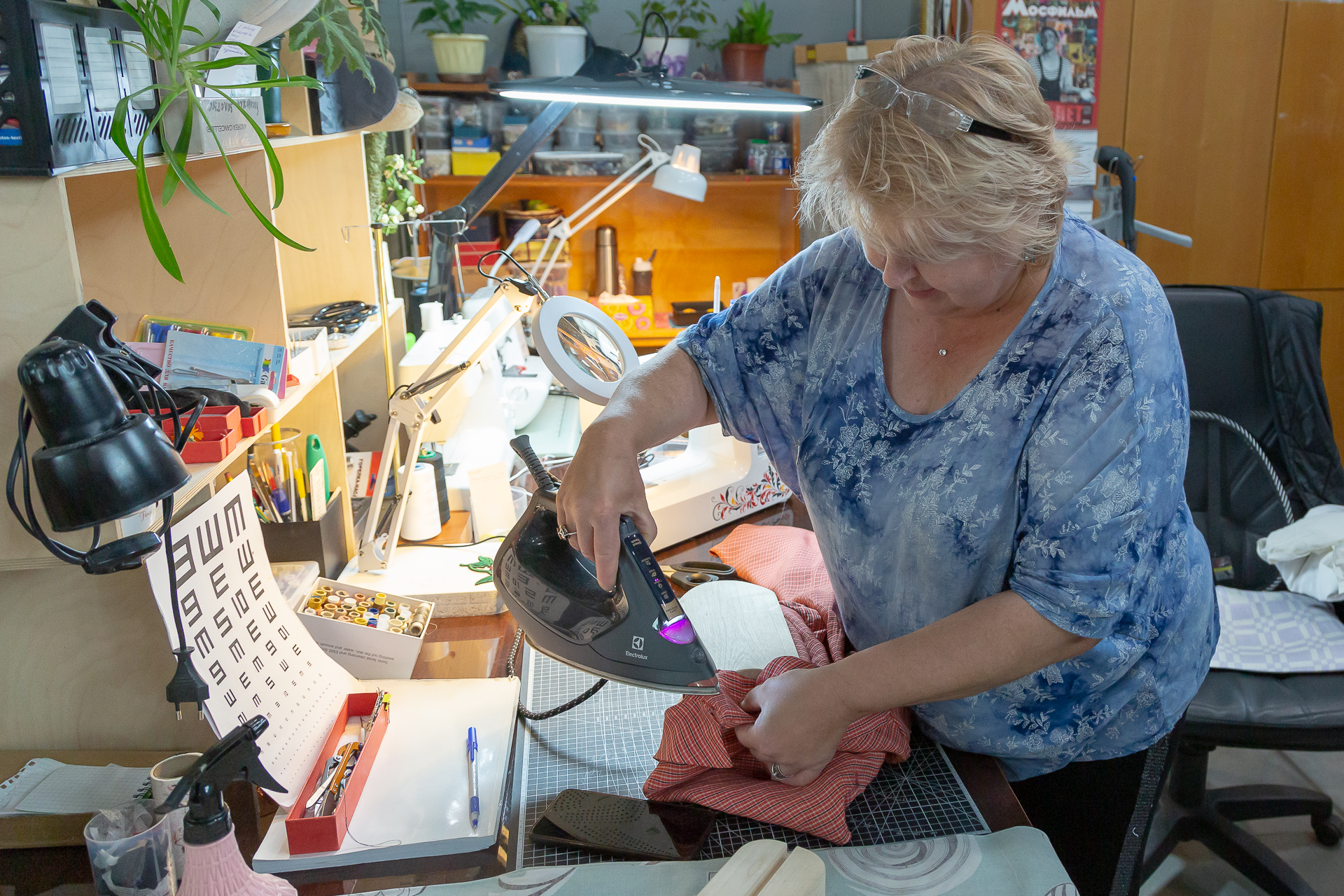 Швейным делом Виктория Кучмаева (на фото) занималась всю жизнь, но в качестве увлечения. А вот настоящей профессией её хобби стало полтора года назад. Сегодня через её руки проходят сотни мужских, женских, военных, исторических костюмов. «Мосфильм» не оказывает услуги по пошиву одежды, но, ежегодно одевая тысячи артистов и участников массовки - для самых разных проектов, всегда должен поддерживать свои обширные фонды в рабочем состоянии. Виктория в отличие от портного, который занимается раскройкой, или дизайнера-модельера, создающего модели одежды, отвечает лишь за качественную «подгонку» и ремонт изделия. Но и это – огромная и сложная работа! Поэтому мастерская швеи тоже похожа на своеобразный склад – помимо рабочего места специалиста, всё пространство помещения всегда заполнено вещами, требующими мелкой починки или полноценного ремонта.