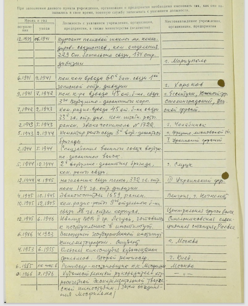Своей первый бой молодой связист принял уже на второй день войны – в лесу при поиске немецких диверсантов. В документах об этом упоминаний нет, но эпизод повлиял на всю дальнейшую фронтовую биографию будущего режиссёра.