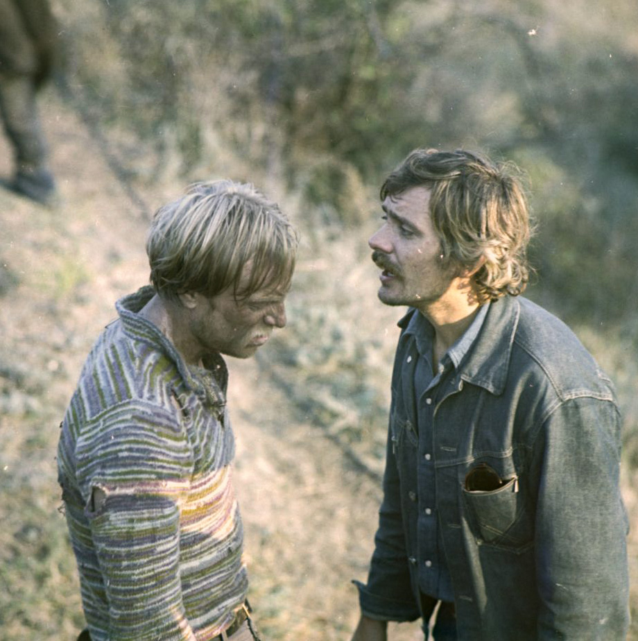 С актрисой Натальей Аринбасаровой на съемках к/м «Спокойный день в конце войны» (1970)