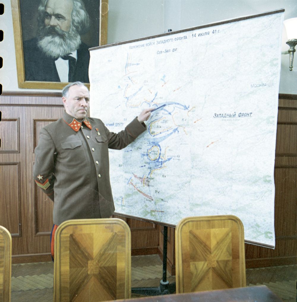 «Самое сложное – восстановление комбинированных кадров, когда титры накладываются непосредственно на изображение. Например, если кадр содержит титр «ВОСТОЧНЫЙ ФРОНТ» или «КАБИНЕТ СТАЛИНА» - неизбежно возникает некий «скачок» в качестве изображения. Советская пленка, мягко говоря, и так была несовершенна, а тут возникает дополнительно взаимное «наложение», которое усиливает дефекты, подчеркивает недостатки. Чаще всего это выглядит как отсутствие стабилизации – это сложный дефект, с которым нужно долго «возиться». И в «Битве за Москву», как и в «Освобождении» - эпопее, которую мы отреставрировали в 2020-м году, таких планов было очень много», - рассказал главный инженер «Мосфильма» Алексей Сеньковский.