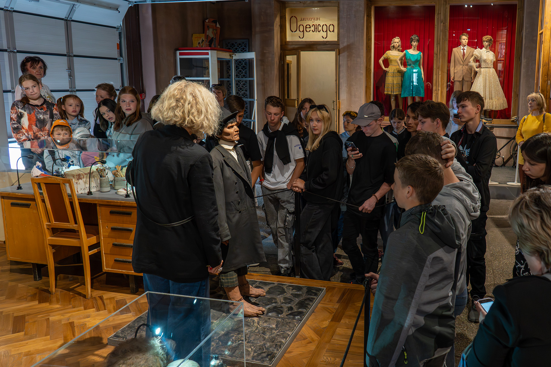 За время экскурсии воспитанники детского дома – дети от 7 до 17 лет - познакомились с собранием мосфильмовского музея – прежде всего, с экспозицией, посвященной 100-летию киностудии, архитектурой и памятниками «Мосфильма», осмотрели внушительную коллекцию ретроавтомобилей, карет, костюмов, макеты декораций, посетили киносъемочные павильоны, познакомились со стендами операторской техники, эскизами, костюмами Главного корпуса и многим другим.