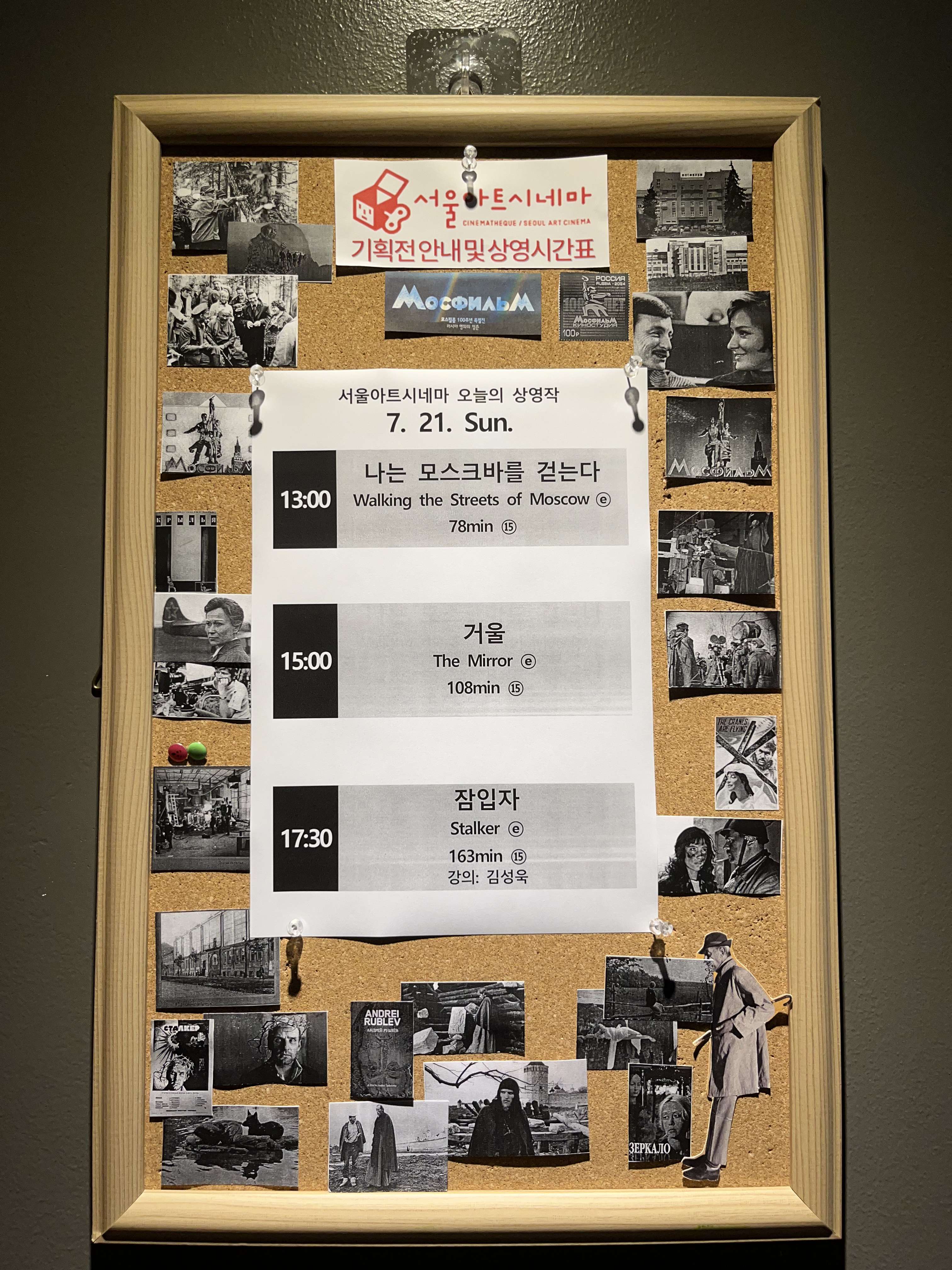 Фестиваль был организован «Мосфильмом» и Корейской ассоциацией кинематографистов. Почти две недели жители и гости Сеула могли посещать сеансы мосфильмовских картин в большом зале синематеки. В современном качестве изображения и звука (4К) были представлены фильмы: «Летят журавли» (реж. М. Калатозов), «Баллада о солдате» (реж. Г. Чухрай), «Я-Куба» (реж. М. Калатозов), «Я шагаю по Москве» (реж. Г. Данелия), «Добро пожаловать, или Посторонним вход воспрещён» (реж. Э. Климов), «Крылья» (реж. Л. Шепитько), «Андрей Рублёв» (реж. А. Тарковский), «История Аси Клячиной, которая любила, да не вышла замуж» (реж. А. Кончаловский), «Зеркало» (реж. А. Тарковский), «Дерзу Узала» (реж. А. Куросава), «Сталкер» (реж. А. Тарковский), «Курьер» (реж. К. Шахназаров).