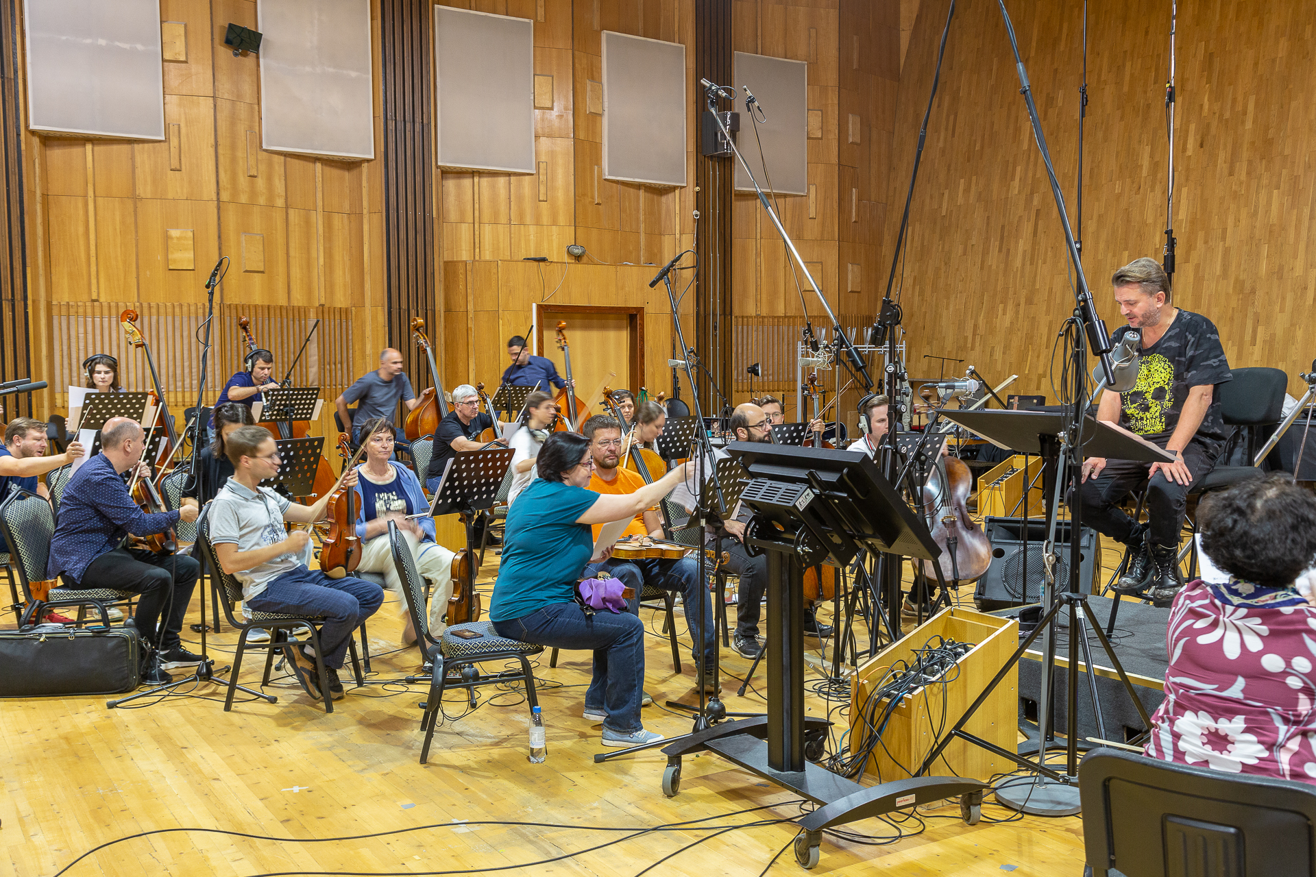 В настоящий момент в 1-й музыкальной студии «Мосфильма» идут сессии звукозаписи оркестра Musica viva. Как рассказал Mosfilm.ru музыкант, заслуженный артист РФ Владислав Лаврик (на фото), выступающий на проекте в качестве дирижера, запись на мосфильмовской Тонстудии будет продолжаться семь дней – по две смены. По словам создателей саундтрека, музыкальный материал впитал в себя дух героев русских народных сказок. Дирижер также сообщил, что специально для записи состав оркестра Musica viva был расширен, в частности, была увеличена группа медных инструментов.