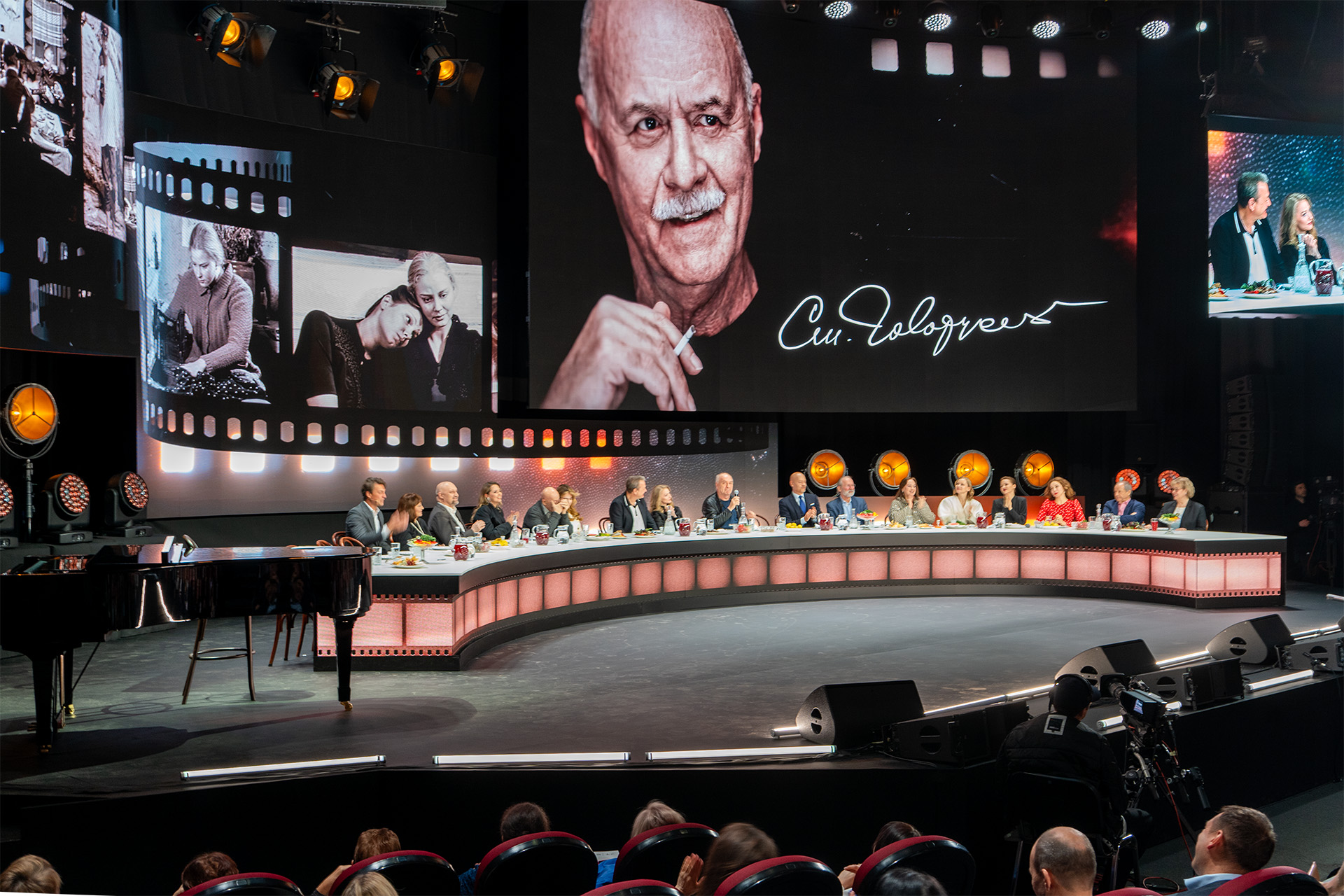 Вечер прошел в теплой, почти домашней атмосфере. Формат застолья, когда на сцене был установлен праздничный стол, за которым сидели участники концерта, располагал к душевным разговорам. Народная артистка РСФСР Лариса Лужина, народный артист России Федор Добронравов, заслуженные артисты России Лариса Гузеева, Тамара Акулова, Светлана Ходченкова, Юлия Пересильд, Екатерина Гусева, режиссер Федор Бондарчук делились воспоминаниями о дружбе и совместной работе.