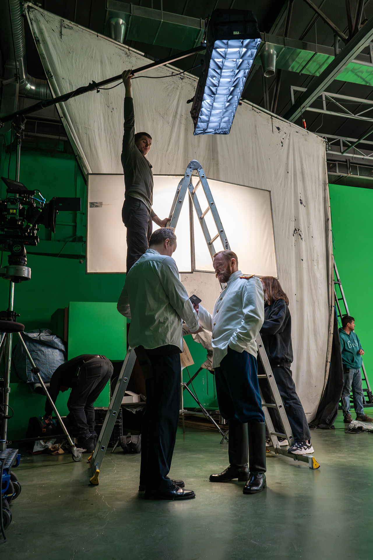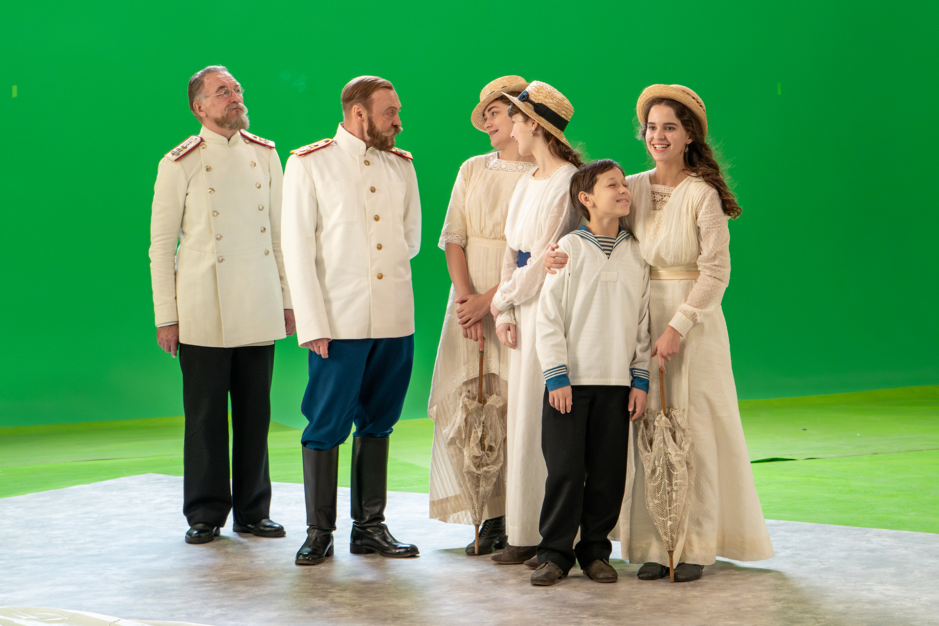 Как рассказал Mosfilm.ru продюсер картины Олег Урушев в хромакей-павильоне были сняты сцены, требующие использования спецэффектов и определенных технологий. В эти дни здесь можно было наблюдать за работой актёра Виталия Кищенко – исполнителя роли Николая II, Ксении Кутеповой, примерившей образ императрицы Александры Фёдоровны, Дмитрия Дюжева, играющего Григория Распутина, а также артистов, исполняющих роли членов царской семьи и её ближайшего окружения.