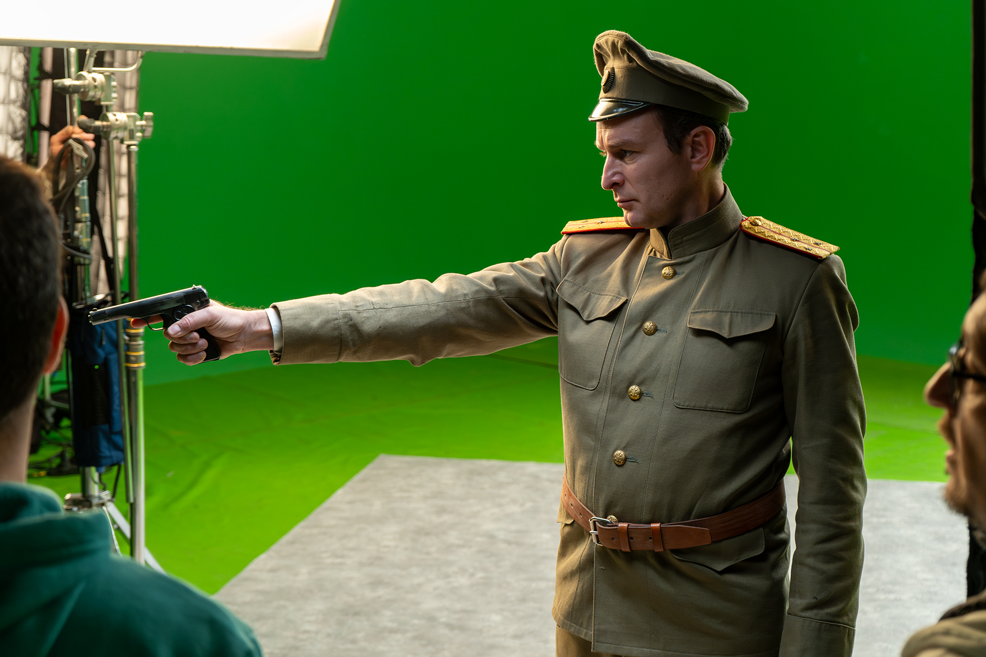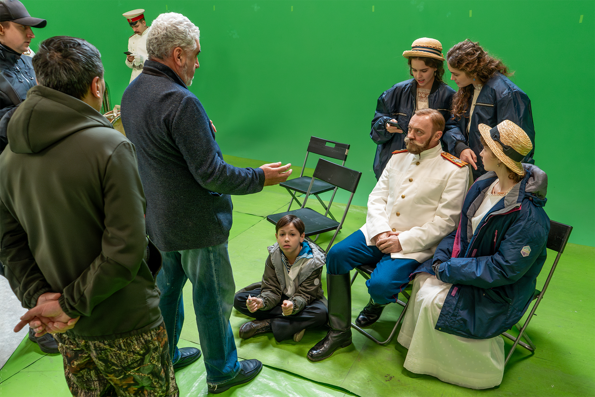 «Обе съемки в павильоне связаны со спецэффектами. В первую смену мы работали с технологией съемки Slow Motion – в сцене расстрела царской семьи, - сообщил продюсер Олег Урушев. - Во второй день снимаем мистическую сцену, некое «видение» главного героя. Ему грезится царская семья – император Николай II, императрица, цесаревич Алексей, дочери, а также убитые ранее доктор Боткин, Григорий Распутин в сопровождении военного оркестра. Технология съемки Chromakey - идеальное средство для поставленных нами целей по созданию нужного нам изображения, постановки кадра. Все высокотехнологичные съемки мы проводим на «Мосфильме» в замечательном павильоне - здесь созданы все необходимые условия».