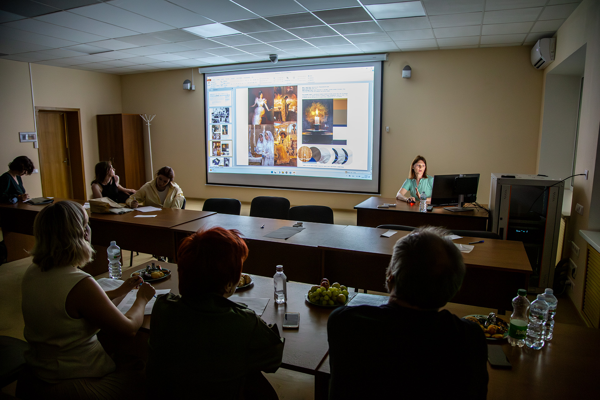 Выпускной экзамен предполагал проверку знаний, которые можно условно разделить на три составляющих: история мужского и женского костюма разных эпох, работы известных художников по костюмам в кино, собственное видение (разбор сцены) персонажа на примере предложенной картины («Романовы: преданность и предательство»).