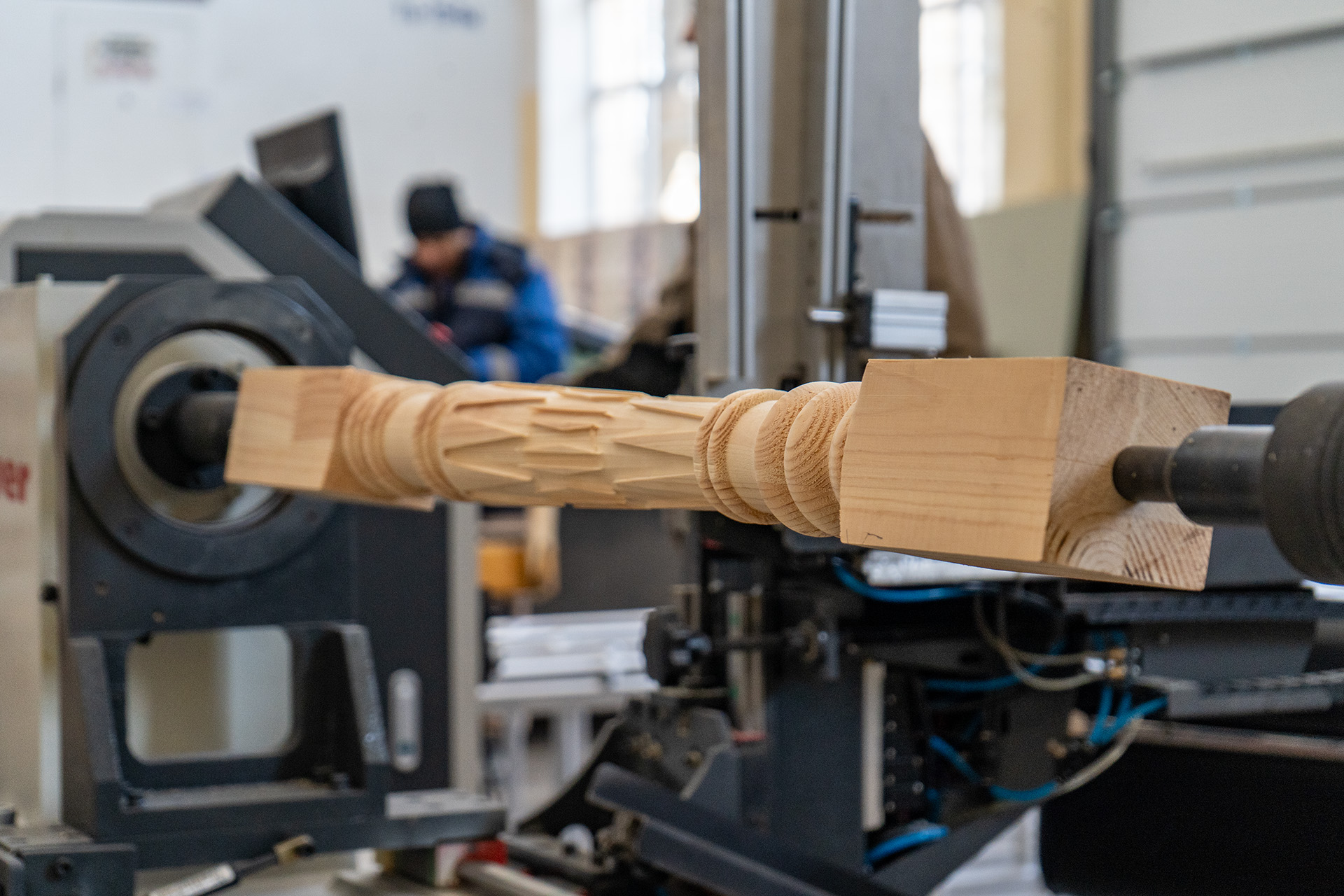 Настоящим «тяжелым машиностроением» в миниатюре выглядит токарный деревообрабатывающий центр с ЧПУ «Beaver 25В4 AUTO». Если раньше максимальная длина заготовки в цехе достигала 1,2 метра, а диаметр — 120 миллиметров, то новый китайский «Beaver» способен «крутить» детали диаметром до 400 миллиметров и длиной до 2,5 метров. Это открывает дорогу для создания массивных балясин, колонн и лепнины. Самый сложный агрегат в линейке, по словам бригадира, требует навыков программирования: простые чертежи станок «переваривает» сам, а вот для объемной 3D-резьбы с затейливыми узорами требуется участие специалиста.