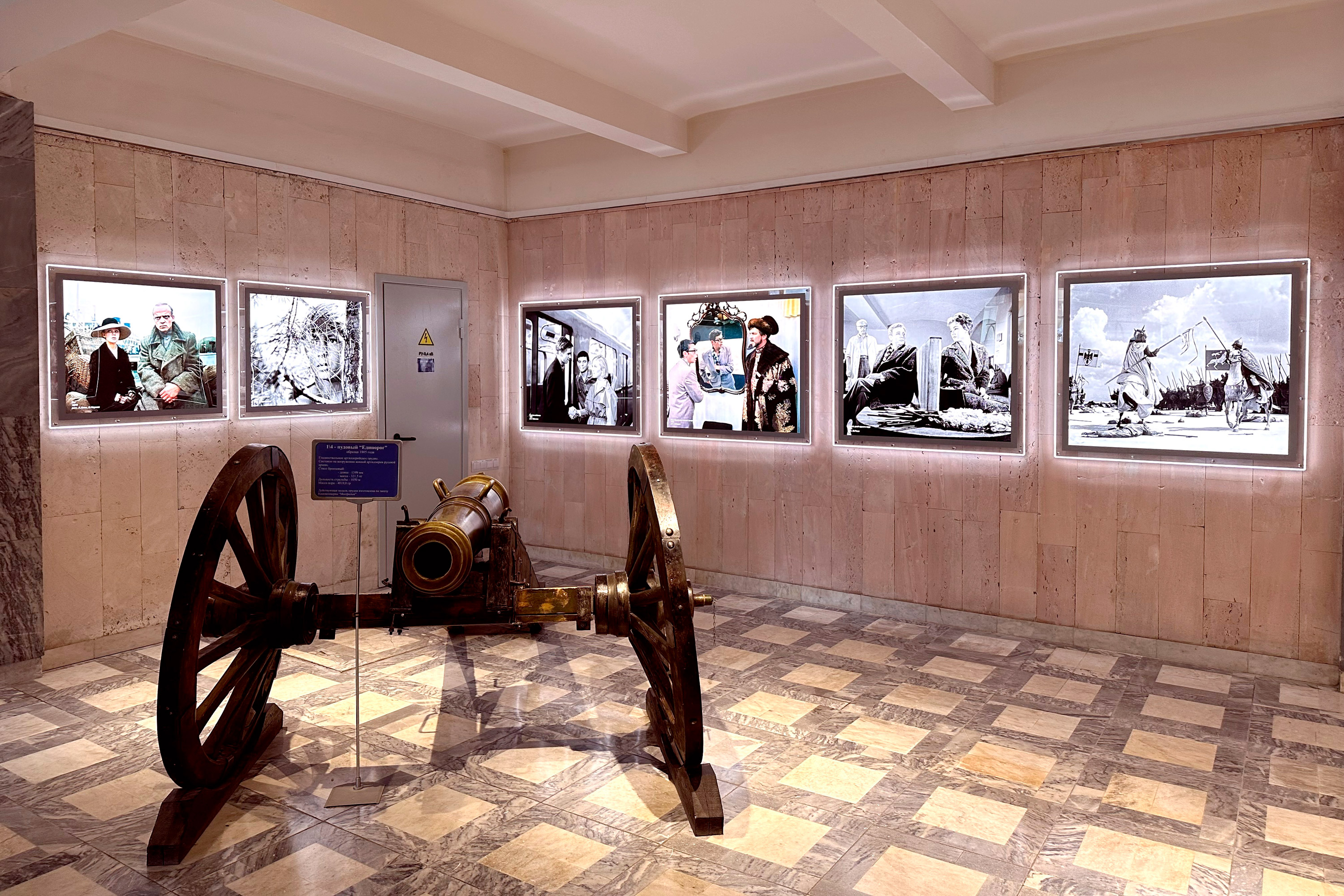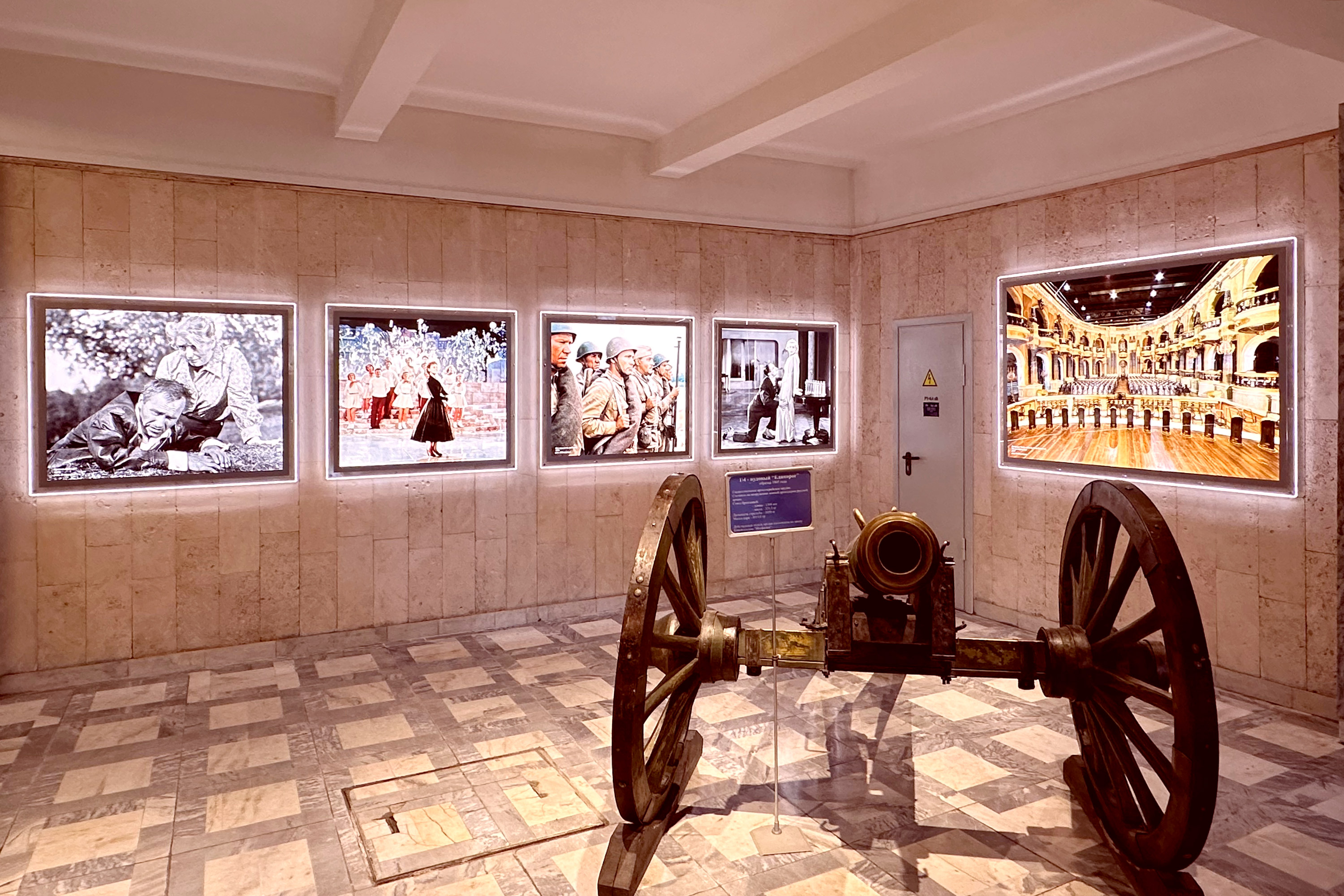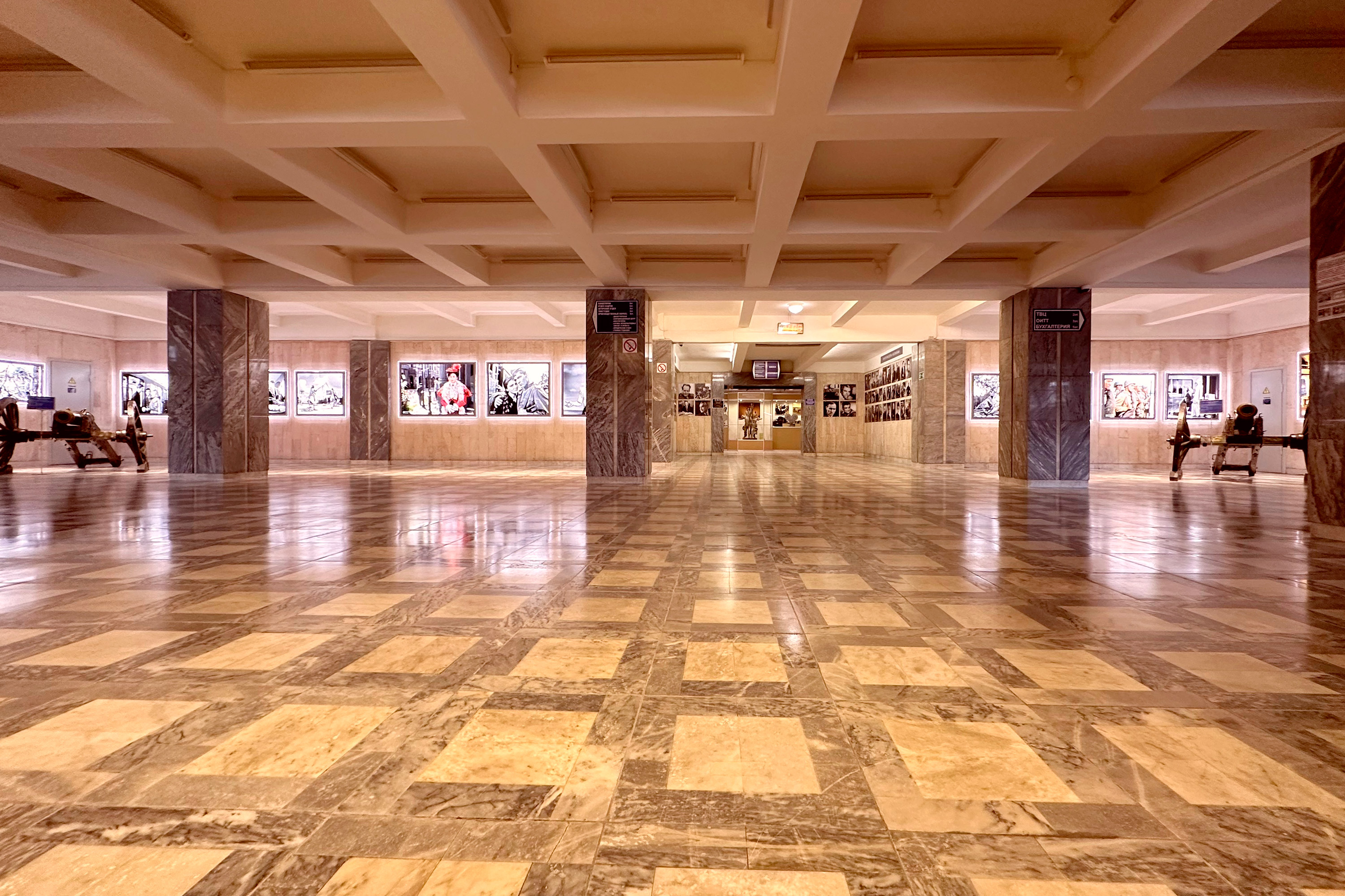 Главное фойе Корпуса недавно было полностью отреставрировано, мраморные полы почищены и отполированы, стены из ракушечника осветлены и отшлифованы, а вдоль стен размещена красочная экспозиция культовых картин из киноколлекции «Мосфильма».