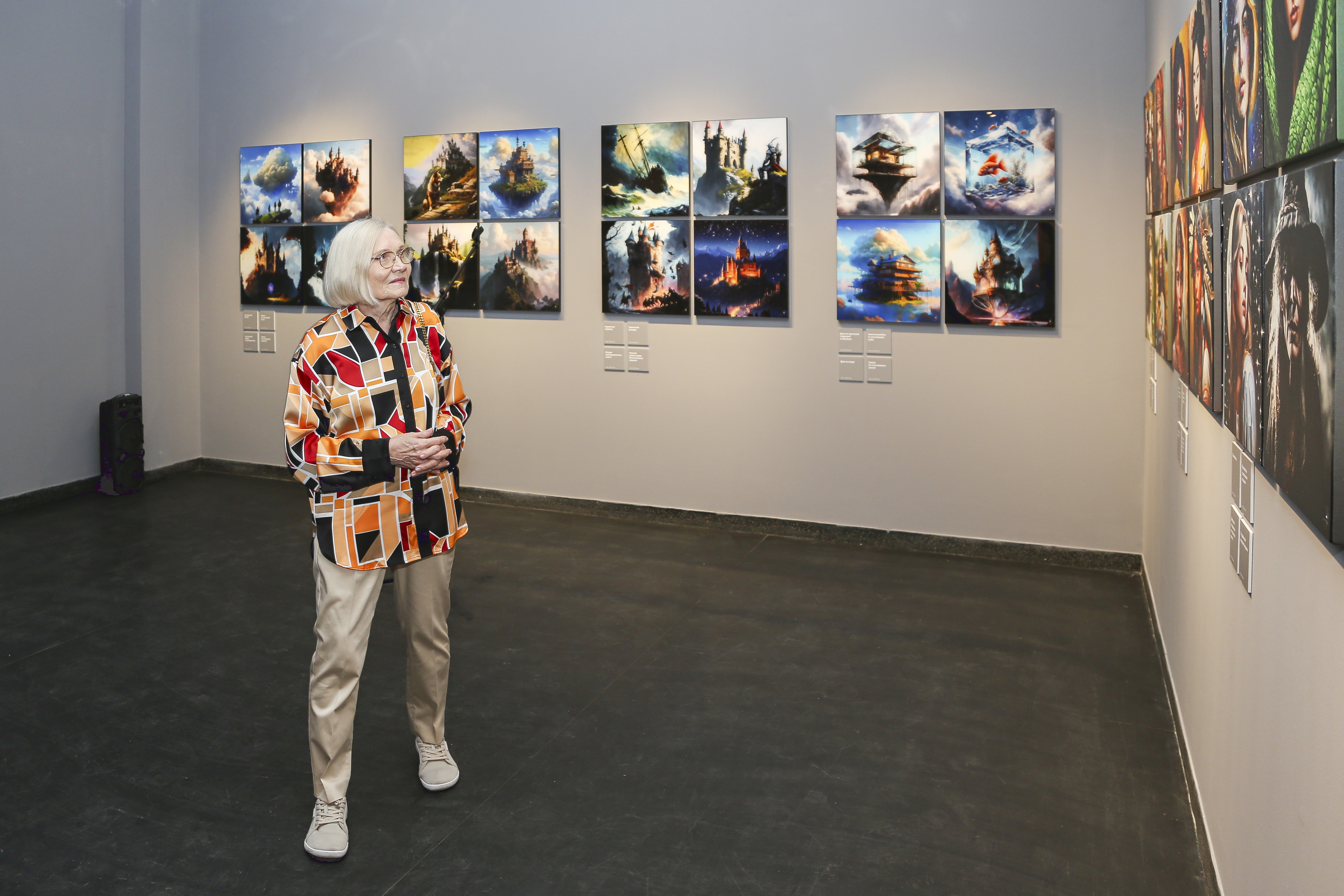 «Мы решили посмотреть, что произойдёт, если уже привычные «арты», сгенерированные нейросетью, перенести с экранов смартфонов на твердые носители и поместить в традиционную обстановку художественной галереи. Мы предоставили ИИ свободу творчества в рамках представленных здесь тем. Сами задания – или как говорят на IT-сленге «промты» - были весьма лаконичными», - рассказал об экспозиции гостям вечера Сергей Волков.