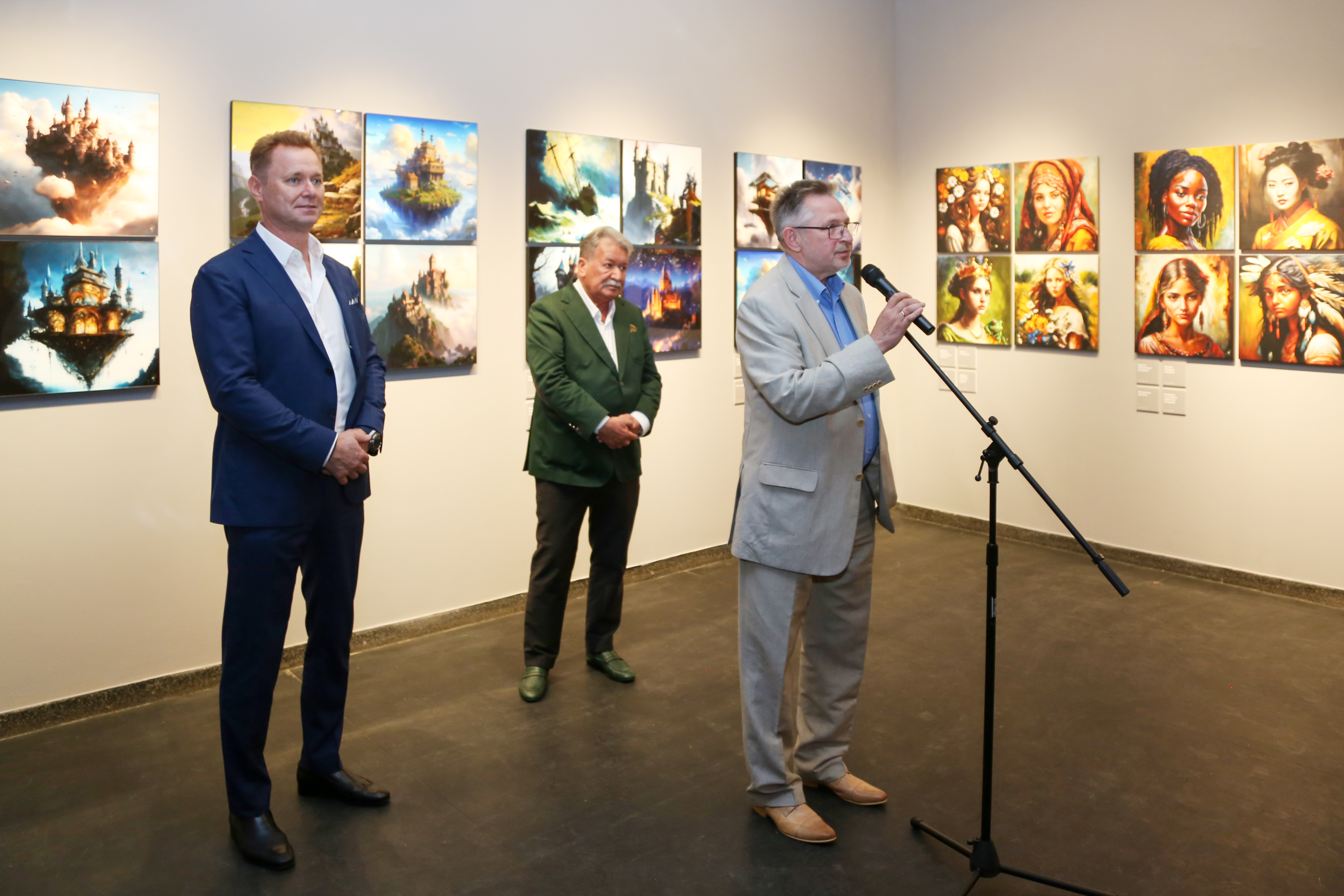 «Мы решили посмотреть, что произойдёт, если уже привычные «арты», сгенерированные нейросетью, перенести с экранов смартфонов на твердые носители и поместить в традиционную обстановку художественной галереи. Мы предоставили ИИ свободу творчества в рамках представленных здесь тем. Сами задания – или как говорят на IT-сленге «промты» - были весьма лаконичными», - рассказал об экспозиции гостям вечера Сергей Волков.