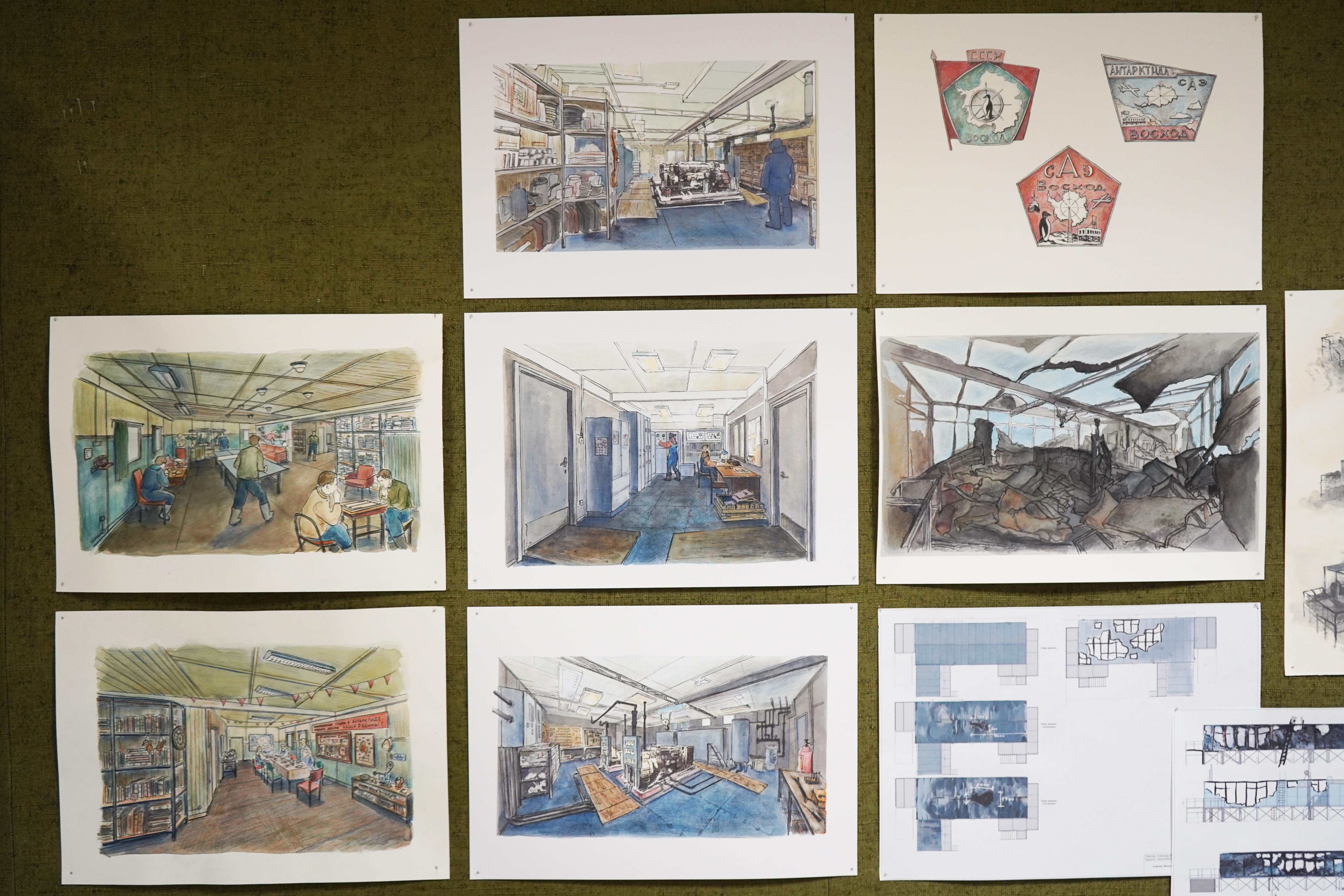 Сейчас команда художников и декораторов готовится к возведению ключевого объекта для съемок — станции «Восход», прообраза реальной советской и российской антарктической станции «Восток». Работа ведется сразу на нескольких фронтах: от исторических изысканий до проектирования сложных конструкций, способных выдержать полярную зиму.