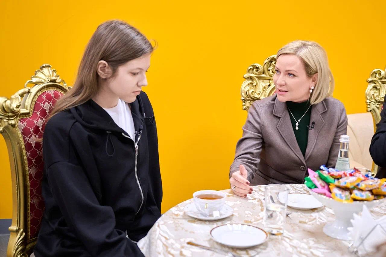 В Доме костюма и реквизита Савиных ознакомилась с богатейшими фондами хранилища – сегодня собрание киностудии насчитывает около полумиллиона предметов (костюмы, реквизит, ретроавтомобили). Министр культуры Ольга Любимова и глава «Мосфильма» Карен Шахназаров поделились секретами киноиндустрии и рассказали об интересных эпизодах из истории киностудии, рассказали юной гостье о нюансах кинопроизводства. В завершении экскурсии состоялось чаепитие и вручение подарков.