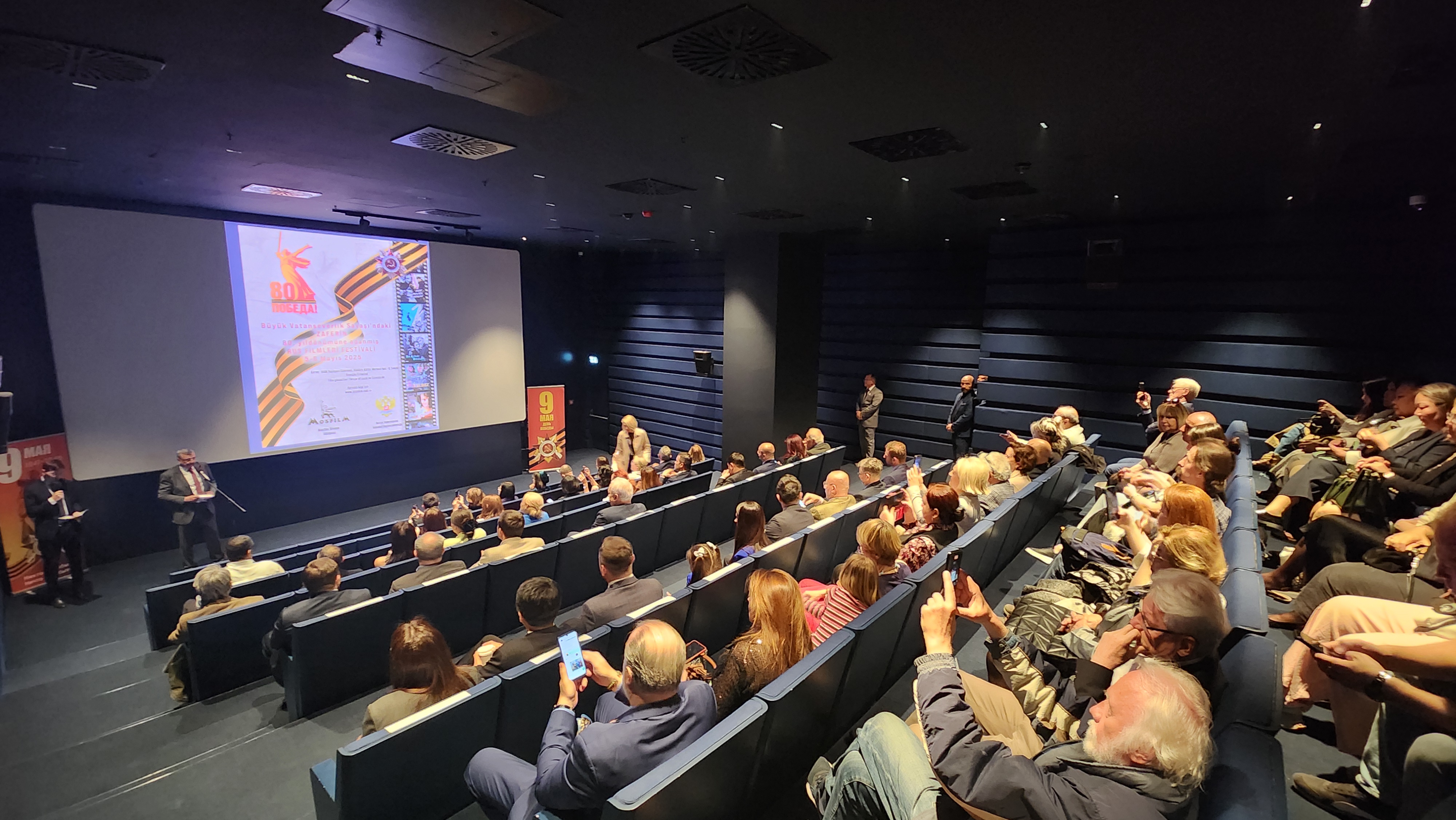 Перед показом с приветственным словом выступил Генеральный консул А.В. Буравов. Подчеркнув общемировое значение подвига народов Советского союза на фронте и в тылу в борьбе с нацизмом, он отметил особую важность сохранения памяти о Великой Отечественной Войне на фоне возрождения человеконенавистнической идеологии в отдельных странах и активного применения коллективным Западом культуры отмены по национальному и этническому принципу. Своими мыслями с участниками кинопоказа поделился почётный гость мероприятия известный турецкий историк, профессор Ильбер Ортайлы, отметивший трагический характер Второй Мировой Войны для всего мира и неоценимый вклад Советского Союза в борьбе с нацизмом и построении новой послевоенной реальности. В фойе кинозала была развёрнута фотовыставка архивных фотографий и плакатов периода Великой Отечественной Войны.