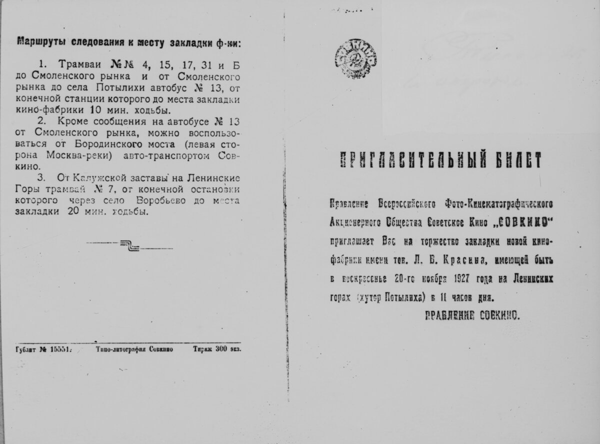 В 1923 году Первая и Третья фабрики Госкино, размещенные в бывшем ателье Ханжонкова на Житной и в бывшем ателье Ермольева в Брянском переулке, были объединены в единое предприятие.