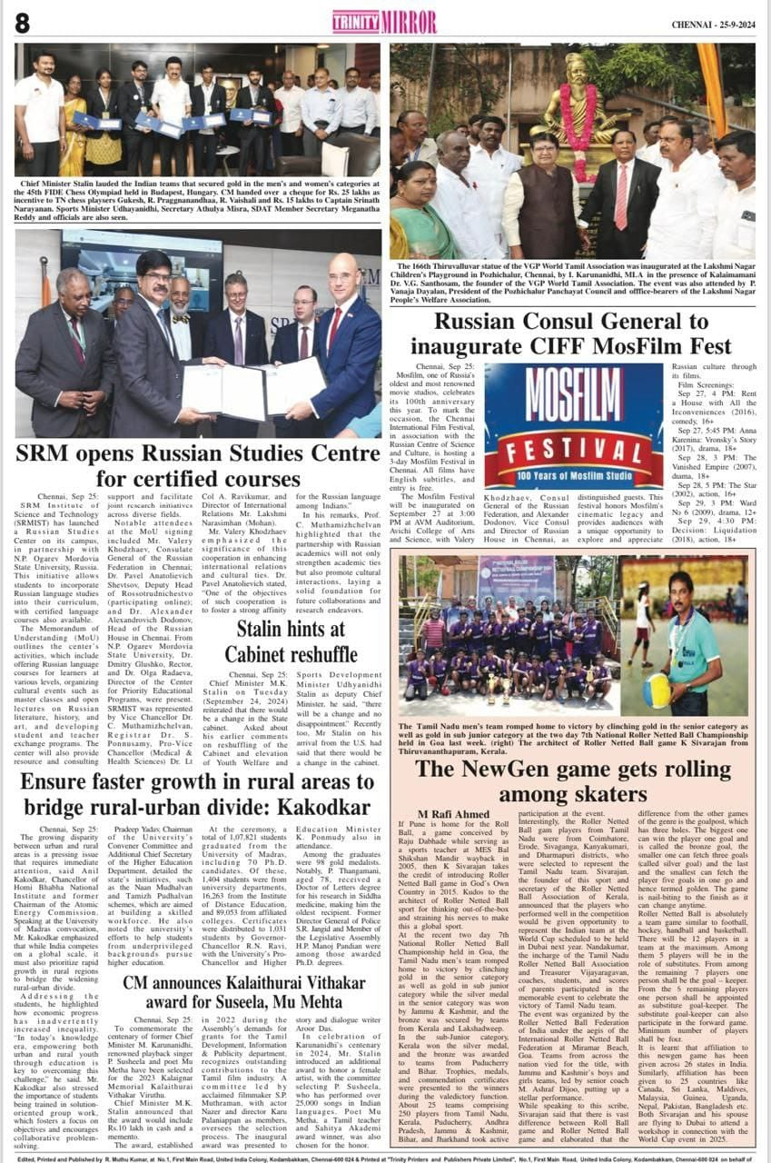 Торжественную церемонию открытия посетил генеральный консул РФ в Ченнаи Валерий Ходжаев. Студенты колледжа искусств Авичи подготовили для зрителей красочную программу – с отсылкой к русской культуре. Фестиваль вызвал большой зрительский ажиотаж, особенно среди местных кинематографистов, поскольку Ченнаи — не просто столица штата Тамилнад, но и сердце Колливуда! Это общее название производимых в Индии фильмов на тамильском языке. Хотя тамильское кино снимают и на Шри-Ланке, центром тамильского кинематографа является город Ченнаи (бывший Мадрас).