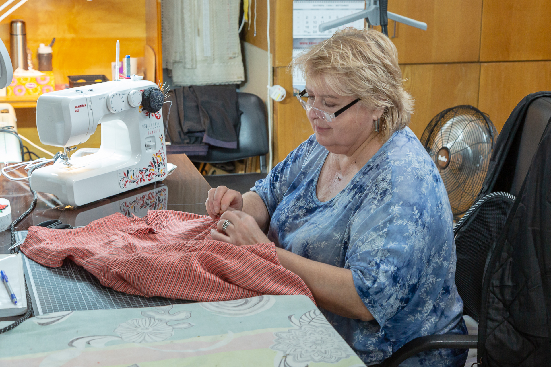 Швейным делом Виктория Кучмаева (на фото) занималась всю жизнь, но в качестве увлечения. А вот настоящей профессией её хобби стало полтора года назад. Сегодня через её руки проходят сотни мужских, женских, военных, исторических костюмов. «Мосфильм» не оказывает услуги по пошиву одежды, но, ежегодно одевая тысячи артистов и участников массовки - для самых разных проектов, всегда должен поддерживать свои обширные фонды в рабочем состоянии. Виктория в отличие от портного, который занимается раскройкой, или дизайнера-модельера, создающего модели одежды, отвечает лишь за качественную «подгонку» и ремонт изделия. Но и это – огромная и сложная работа! Поэтому мастерская швеи тоже похожа на своеобразный склад – помимо рабочего места специалиста, всё пространство помещения всегда заполнено вещами, требующими мелкой починки или полноценного ремонта.