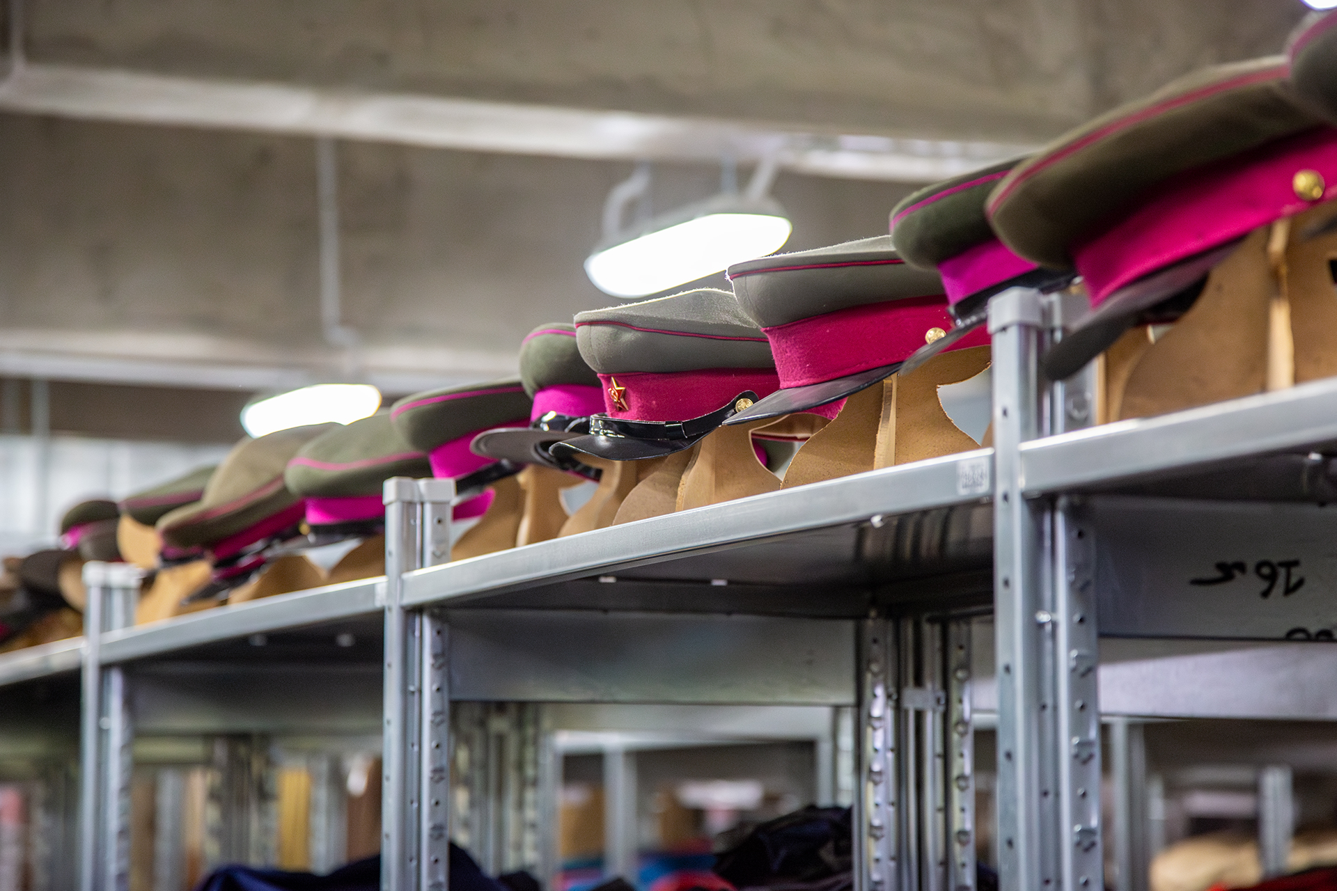 - униформа для рядового состава РККА образца 1922 года (летняя форма с будёновкой) – 5 комплектов;