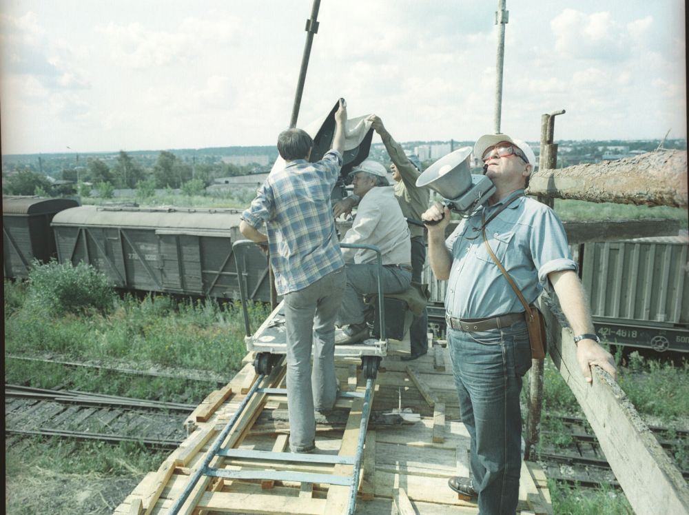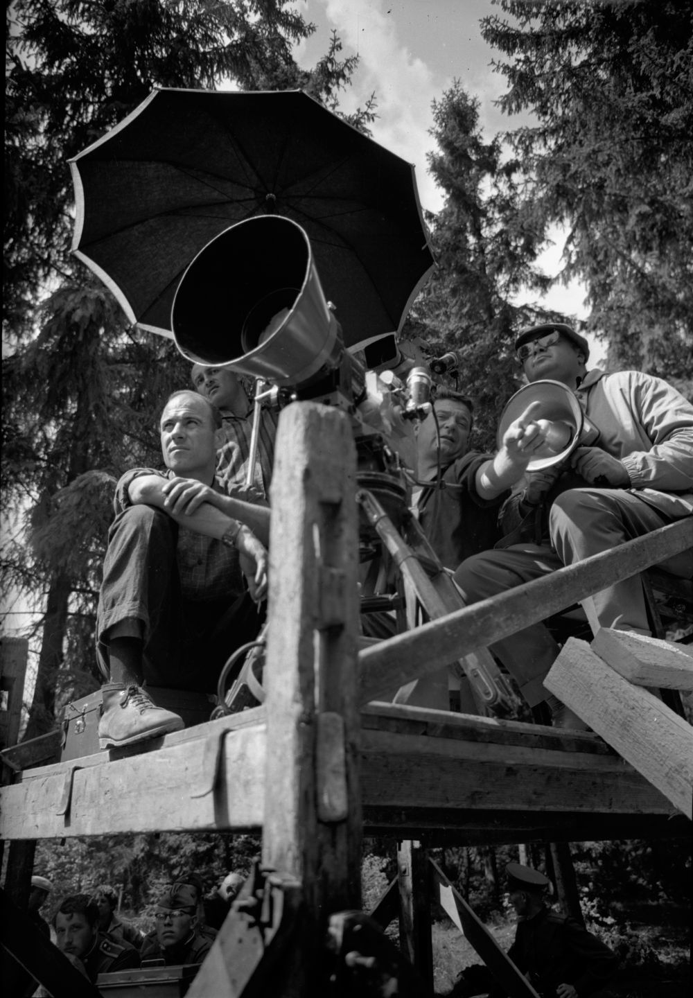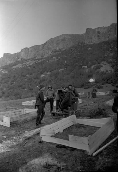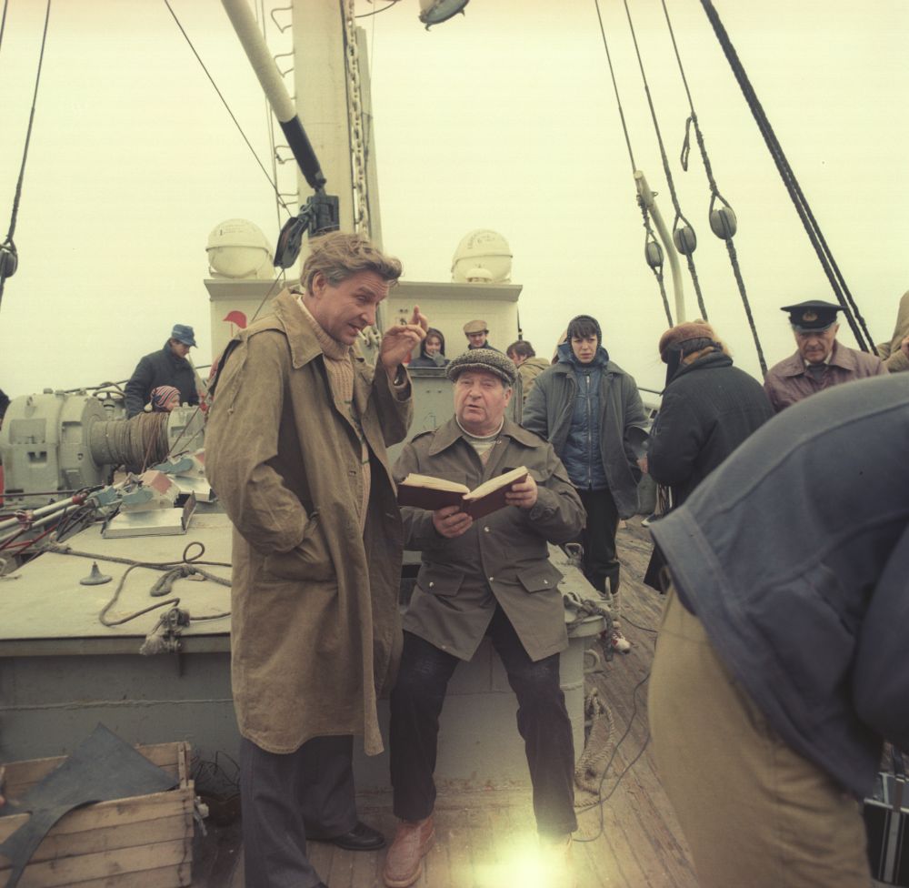 Режиссер Юрий Озеров и оператор Игорь Слабневич на съемках картины «Сталинград» (1980-е гг., Мосфильм-Инфо)