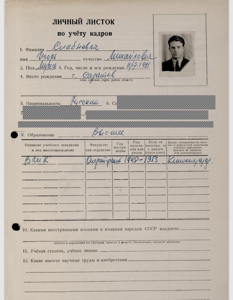 Фрагмент автобиографии, написанной И. Слабневичем (архив «Мосфильма»)