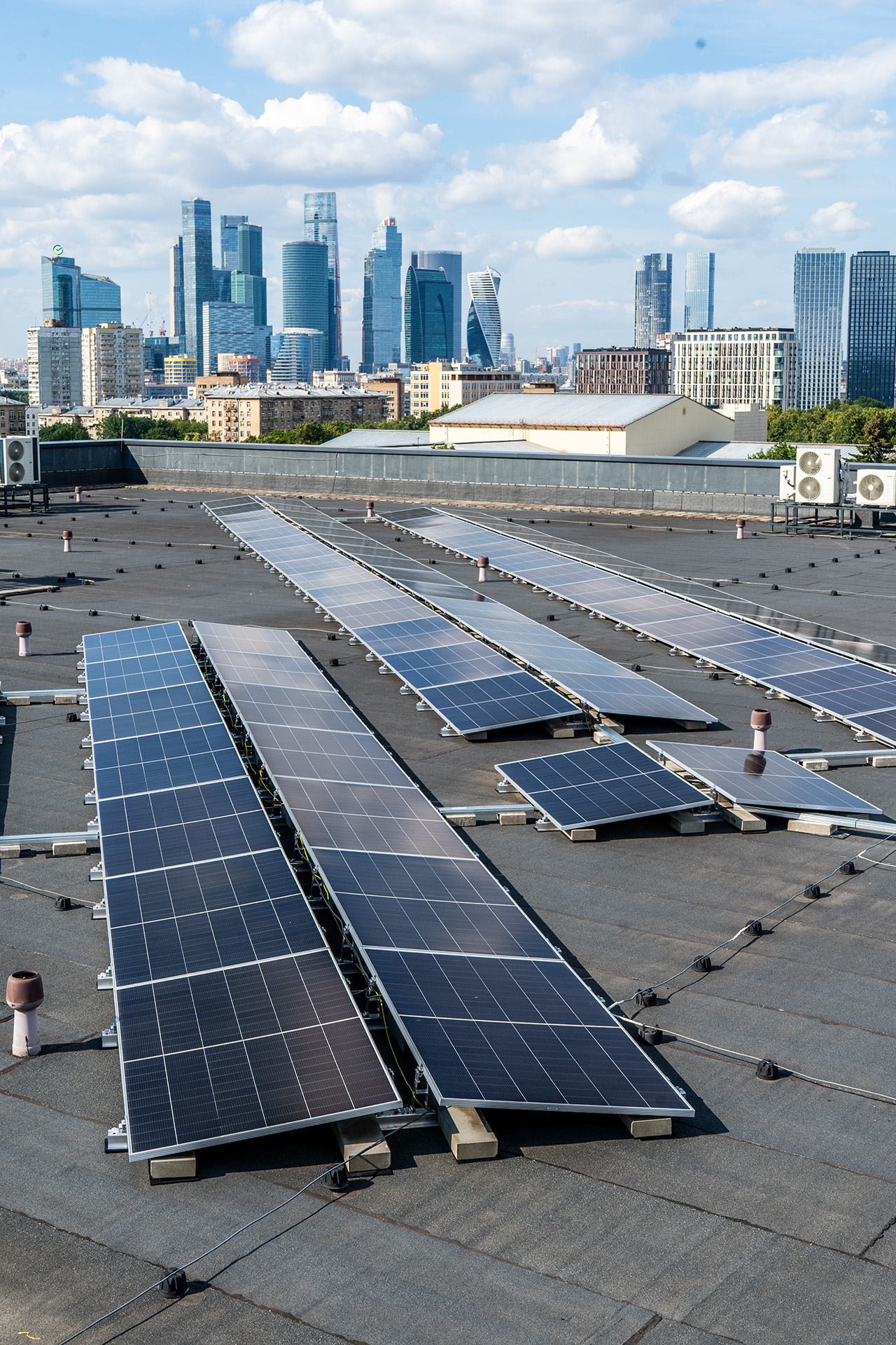 «Максимальный запрос на мощность со стороны системы кондиционирования одинаков с предельными значениями выработки солнечной электростанции. Поскольку температура окружающей среды и объем солнечной радиации находятся в прямой зависимости, в ночное и вечернее время система кондиционирования в здании принудительно отключается», - рассказал главный инженер «Мосфильма» Алексей Сеньковский.