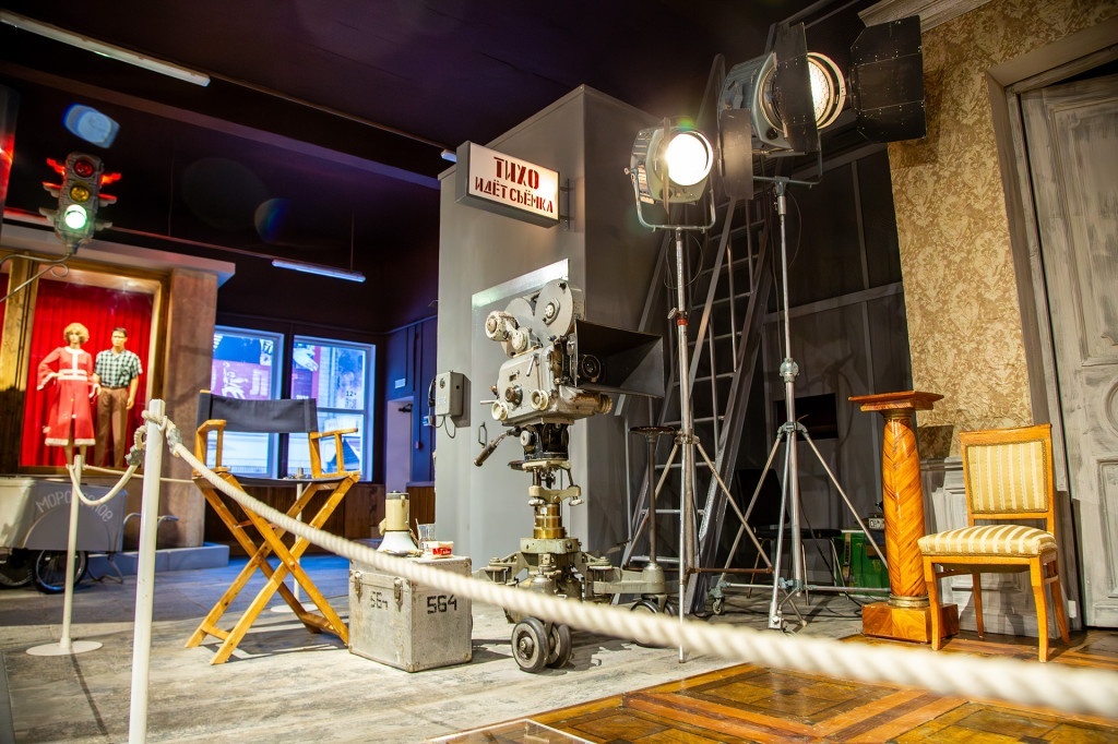 Экспозиция покажет и расскажет не только о том, как снимали кино, но и как его смотрели. На выставке представлен раритетный кинопроектор, воссоздан настоящий кинозал.
