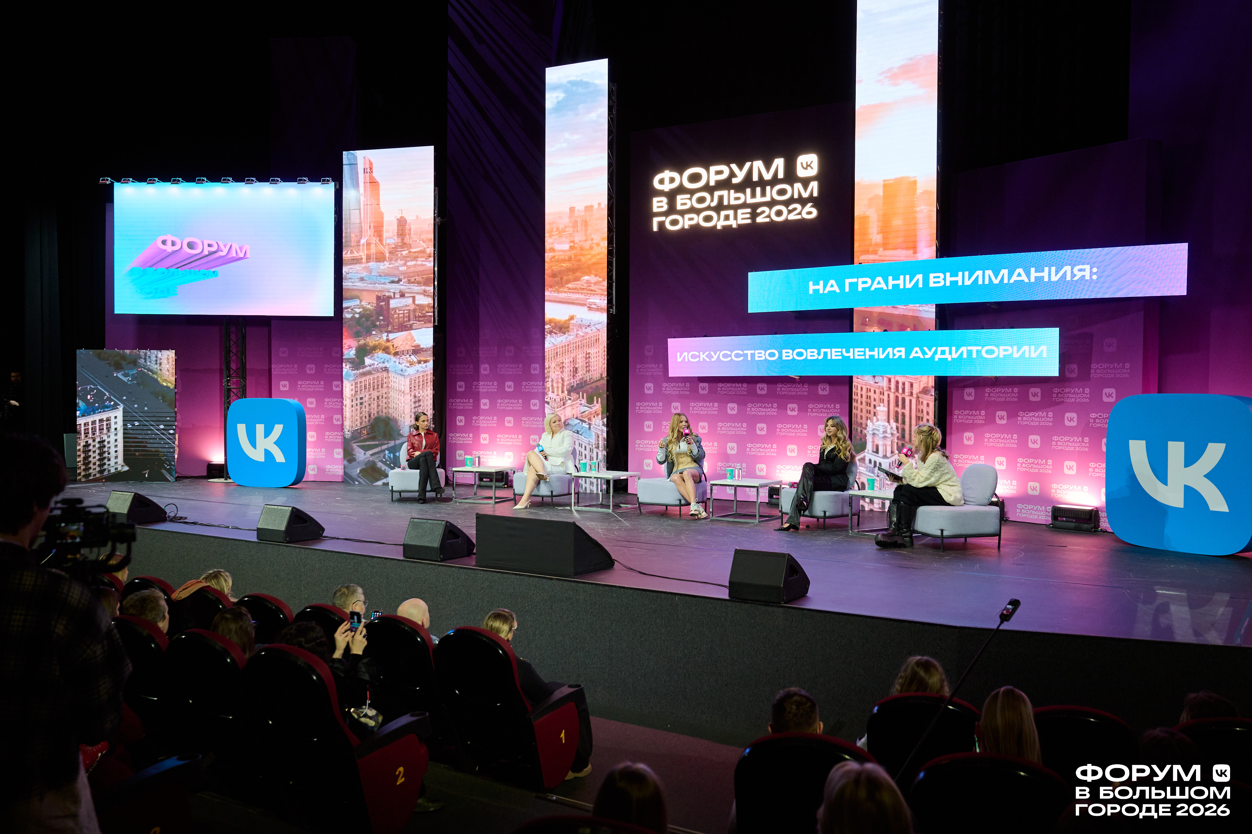 Форум стартовал с беседы об инструментах вовлечения аудитории: эксперты рассказали, как юмор, хейт и быстрая реакция на тренды помогают продвигать личный бренд. На встрече неожиданно появился Гоша Куценко: подарил девушкам-спикерам цветы и рассказал о фильме «Тюльпаны» — актёр снялся в нём с Варварой Щербаковой, участвующей в дискуссии. По словам Гоши, фильм получился лирическим, нежным и трогательным. Актёр признался, что хотел бы сходить в кино на «Тюльпаны» не только с семьёй, но и с Варварой Щербаковой и Валей Карнавал.