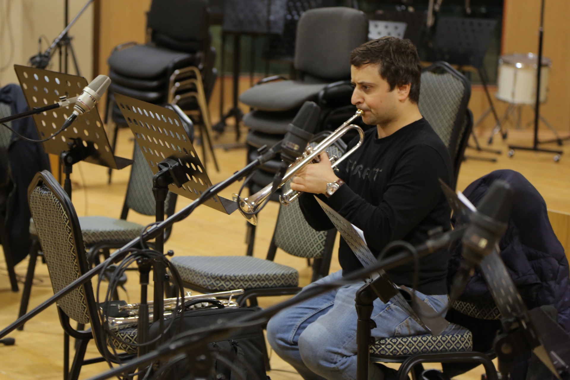 В 1-й музыкальной студии расположились музыканты коллектива Open Sound Orchestra. Как рассказал Mosfilm.ru сам композитор, сессия звукозаписи на «Мосфильме» была разделена на отдельные записи струнной секции и медно-духовых инструментов – под творческие задачи, поставленные продюсерами картины. Ранее, в марте, оркестр уже собирался для записи части музыкального материала. Сейчас, музыканты продолжили работу над новыми сценами.