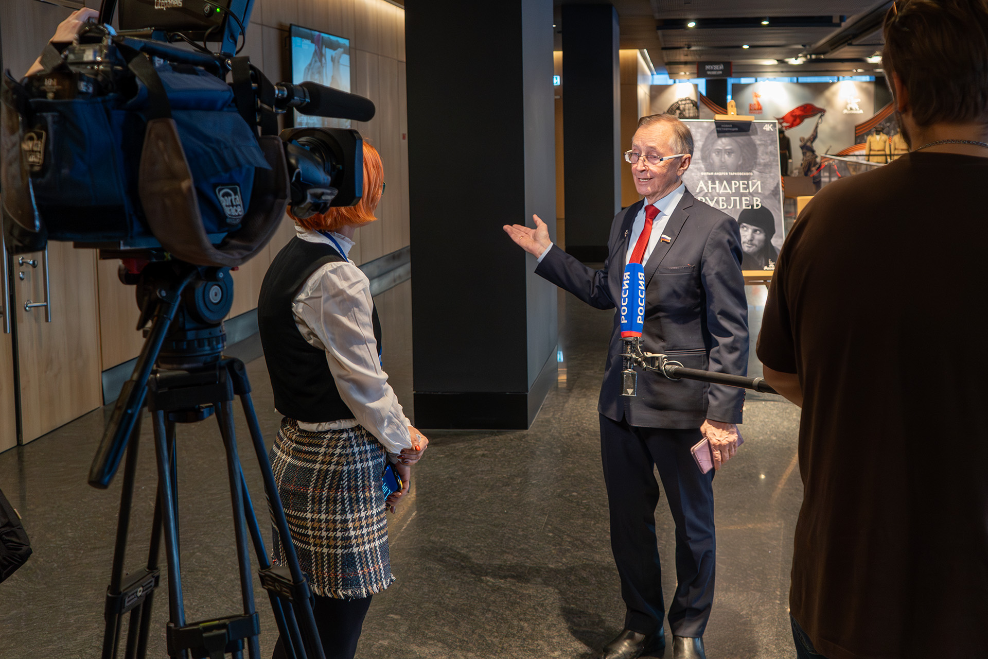 Со сцены кинозала Юрий Назаров сделал акцент на том, что фильм "Андрей Рублев" представляет собой "двойной автопортрет" - самого Тарковского, чье видение пронзает всю картину, и Анатолия Солоницына, гениально исполнившего роль иконописца. "Ведь это наша история, культура, верность", - сказал Назаров. Он также поблагодарил реставраторов за то, что те подарили картине новую жизнь.