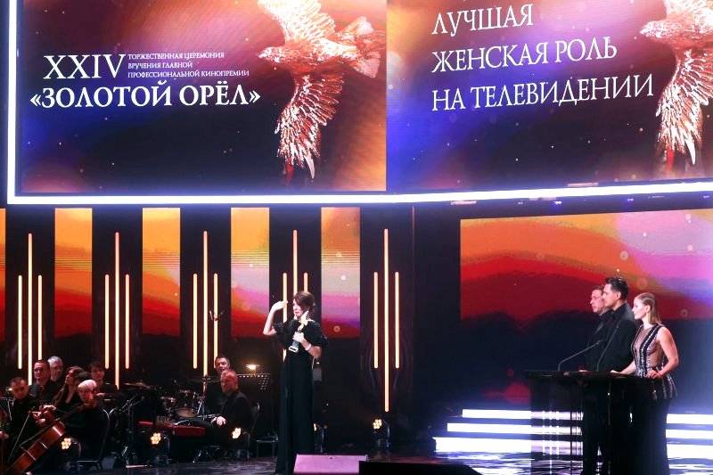 Телевизионное и онлайн-кино также было отмечено щедро. Полный триумф ждал сериал «Атом» (реж. Нурбек Эген) о создателях советской атомной бомбы: звание лучшего телесериала года, а также награды Алексею Гуськову (лучшая мужская роль на ТВ) и Екатерине Климовой (лучшая женская роль на ТВ). Климова, принимая приз, с улыбкой заметила, что это, «скорее всего, за выслугу лет», и пообещала поселить «Орла» на мамином шифоньере между иконами.