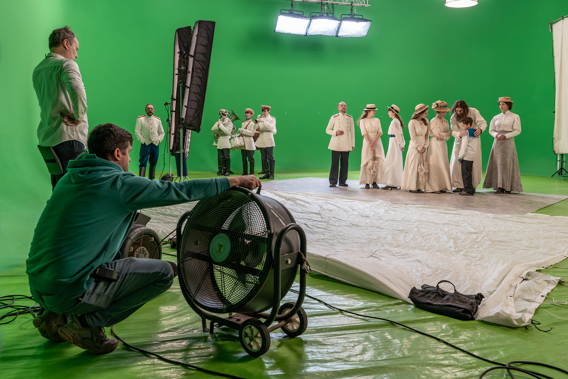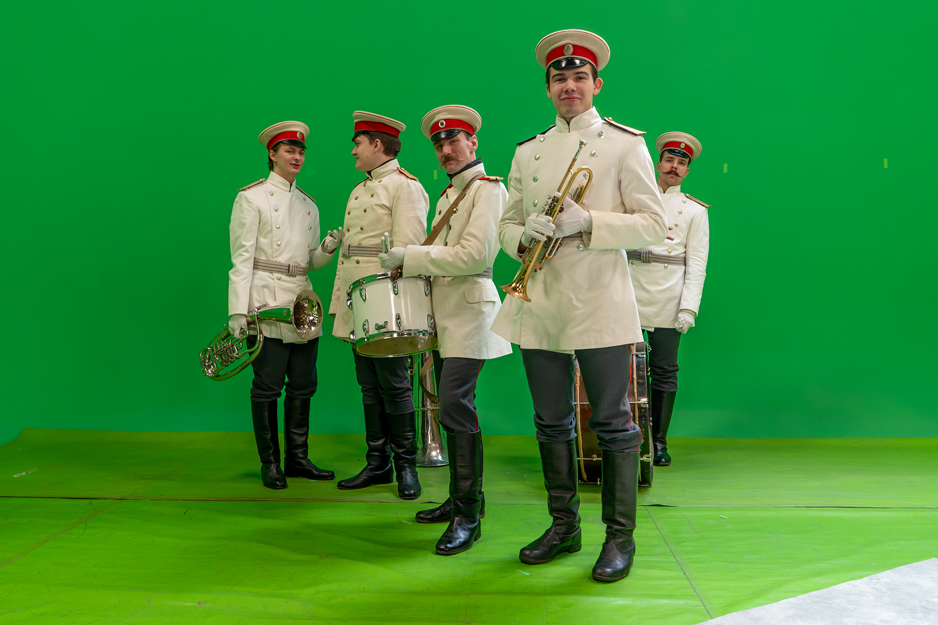 «Обе съемки в павильоне связаны со спецэффектами. В первую смену мы работали с технологией съемки Slow Motion – в сцене расстрела царской семьи, - сообщил продюсер Олег Урушев. - Во второй день снимаем мистическую сцену, некое «видение» главного героя. Ему грезится царская семья – император Николай II, императрица, цесаревич Алексей, дочери, а также убитые ранее доктор Боткин, Григорий Распутин в сопровождении военного оркестра. Технология съемки Chromakey - идеальное средство для поставленных нами целей по созданию нужного нам изображения, постановки кадра. Все высокотехнологичные съемки мы проводим на «Мосфильме» в замечательном павильоне - здесь созданы все необходимые условия».