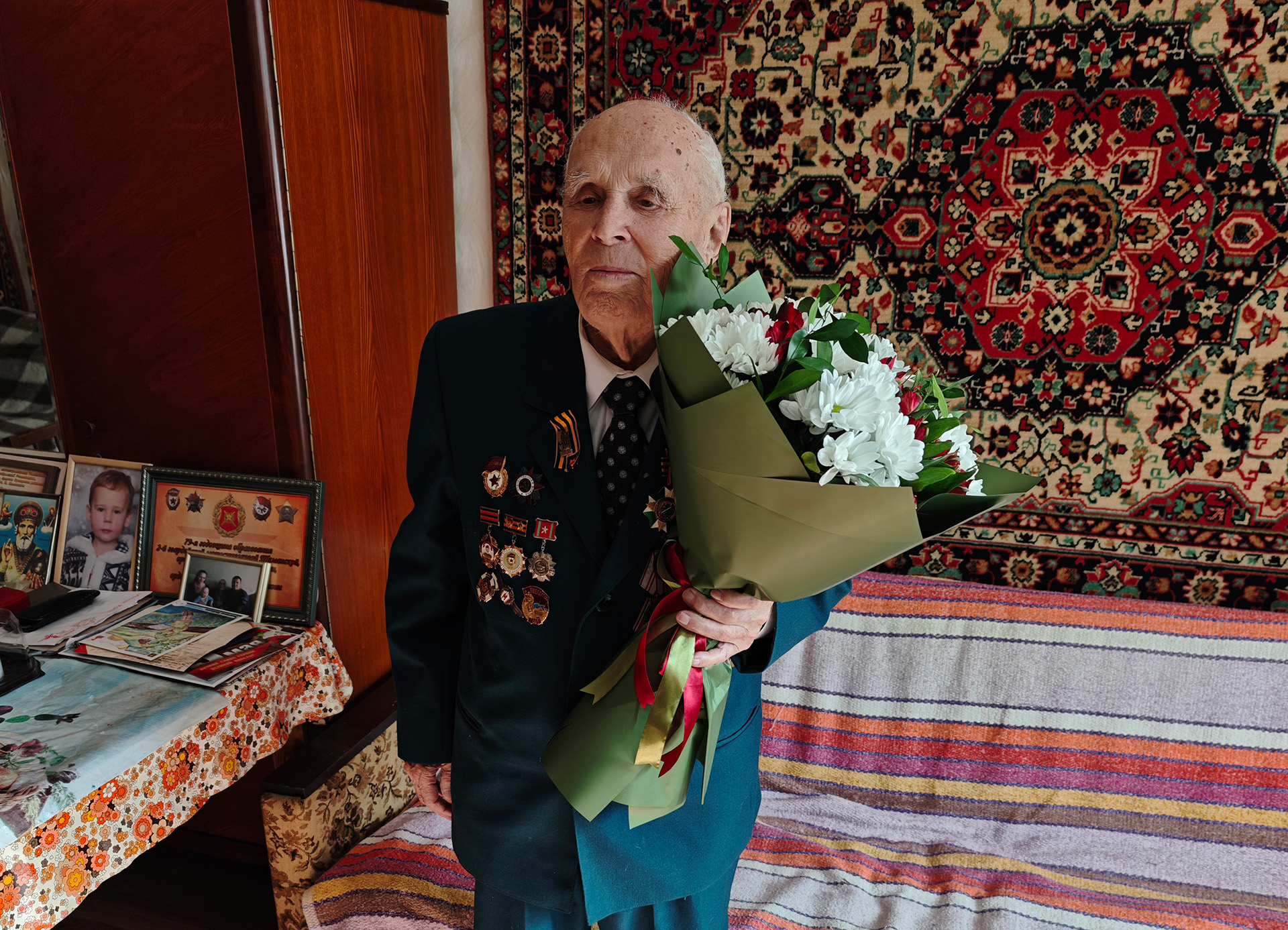 «Между нашими позициями и позициями немцев проходила речка. Немцы сделали оборону не по берегу, а повыше, метрах в ста от речки. А возле речки место свободное. Когда нашим войскам надо было наступать, в этом свободном месте по ночам копали траншею. Но связи с траншеей не было. А для наступления нужна связь... Командир увидел меня: вот, ты там был, знаешь, как пройти. Дал мне бумажку в руки. И я побежал. Хорошо, что я знал, как перейти речку. Перешёл её вброд, полежал немножко, огляделся: ещё надо пройти. Пробирался то ползком, то чуть быстрее – в любой момент противник мог меня обнаружить. Когда до траншеи осталось метров двадцать, я думаю: ладно, будь что будет... Добежал и спрыгнул туда», – делится ветеран.