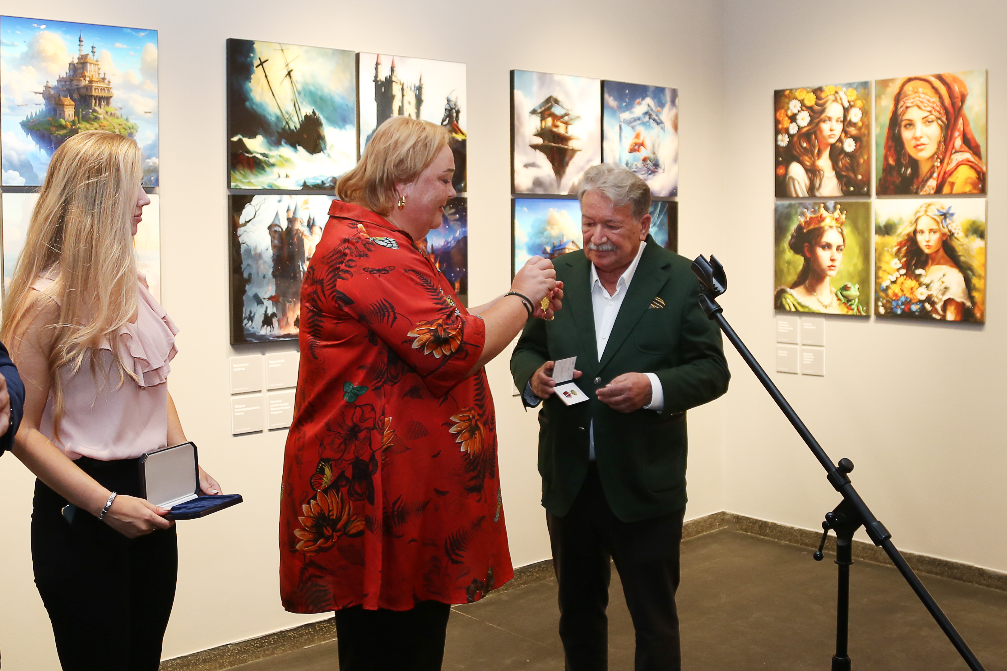 «Мы решили посмотреть, что произойдёт, если уже привычные «арты», сгенерированные нейросетью, перенести с экранов смартфонов на твердые носители и поместить в традиционную обстановку художественной галереи. Мы предоставили ИИ свободу творчества в рамках представленных здесь тем. Сами задания – или как говорят на IT-сленге «промты» - были весьма лаконичными», - рассказал об экспозиции гостям вечера Сергей Волков.