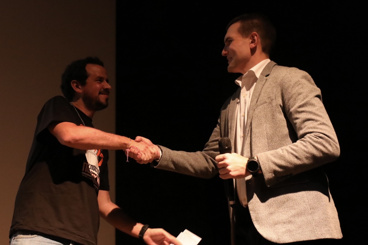 Перед показом к зрителям с экрана обратился сам режиссер, поблагодаривший всех организаторов фестиваля и представив программу: